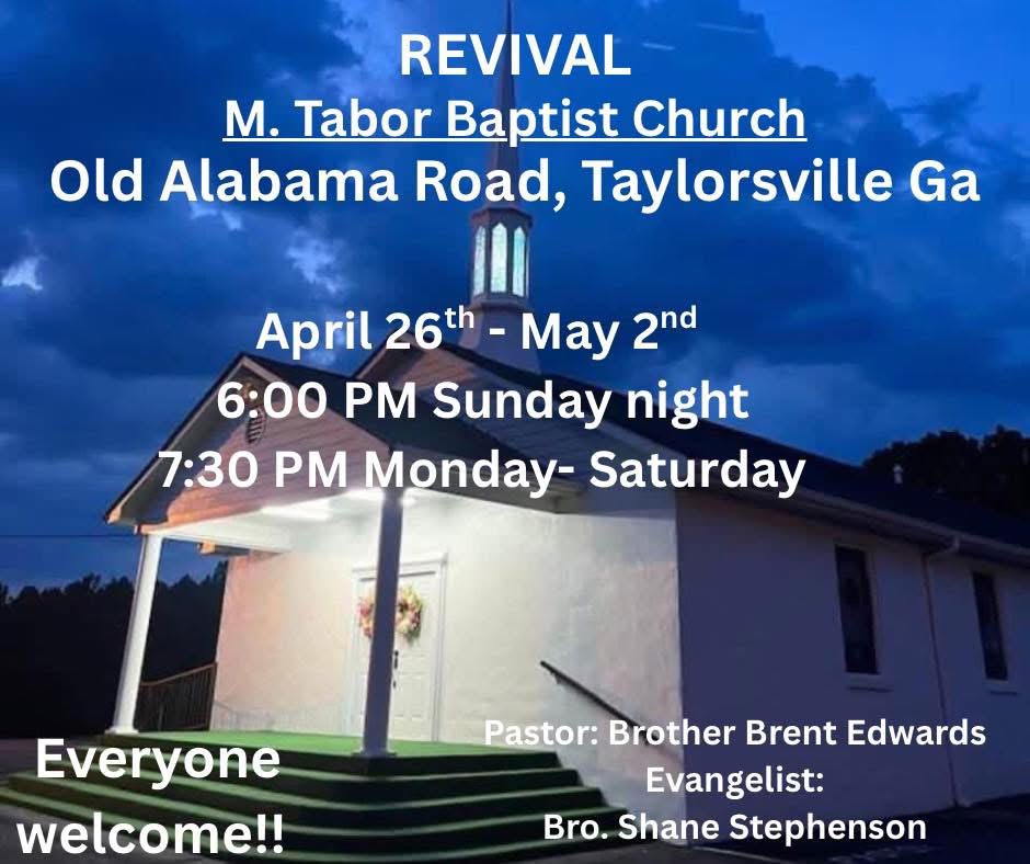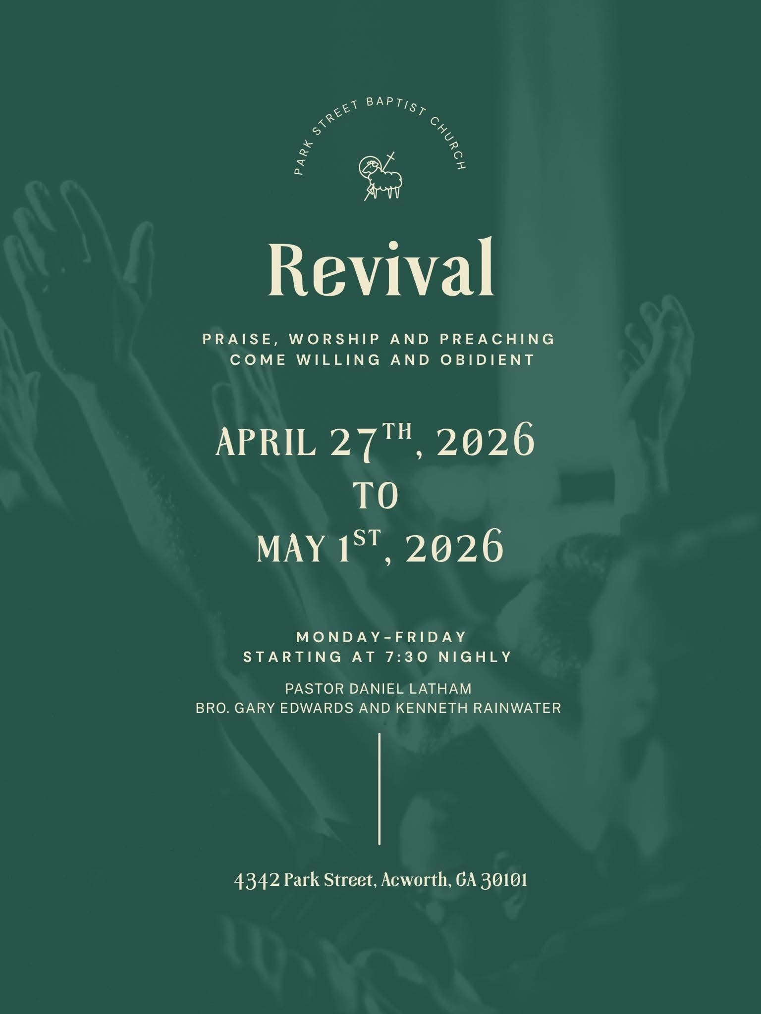 Disclaimer: This revival list is shared as a community resource and includes churches and evangelists added at the request of the community. Being listed does not imply endorsement by Welcome Grove Baptist Church. We encourage everyone to seek the Lord's guidance and use prayerful discernment when attending any revival.
